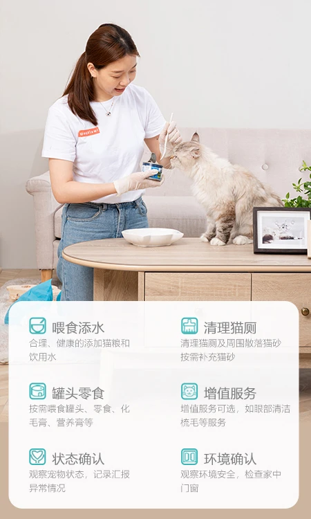一如既往的专业,耐心,周到,对主子十分温柔,会一直合作下去!小程序上线之后感觉各种注意事项更加清晰明了,推荐这项上门喂猫服务给各位奴才,为了主子的健康和好心情! --青***5
